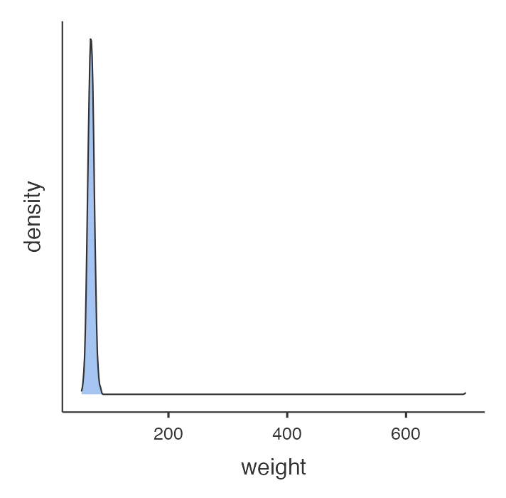 sample$weight_clean = ifelse(sample$weight==700.2, NA, sample$weight)Note: if an extreme value lies within the range of biological possibility it should not be set to missing.