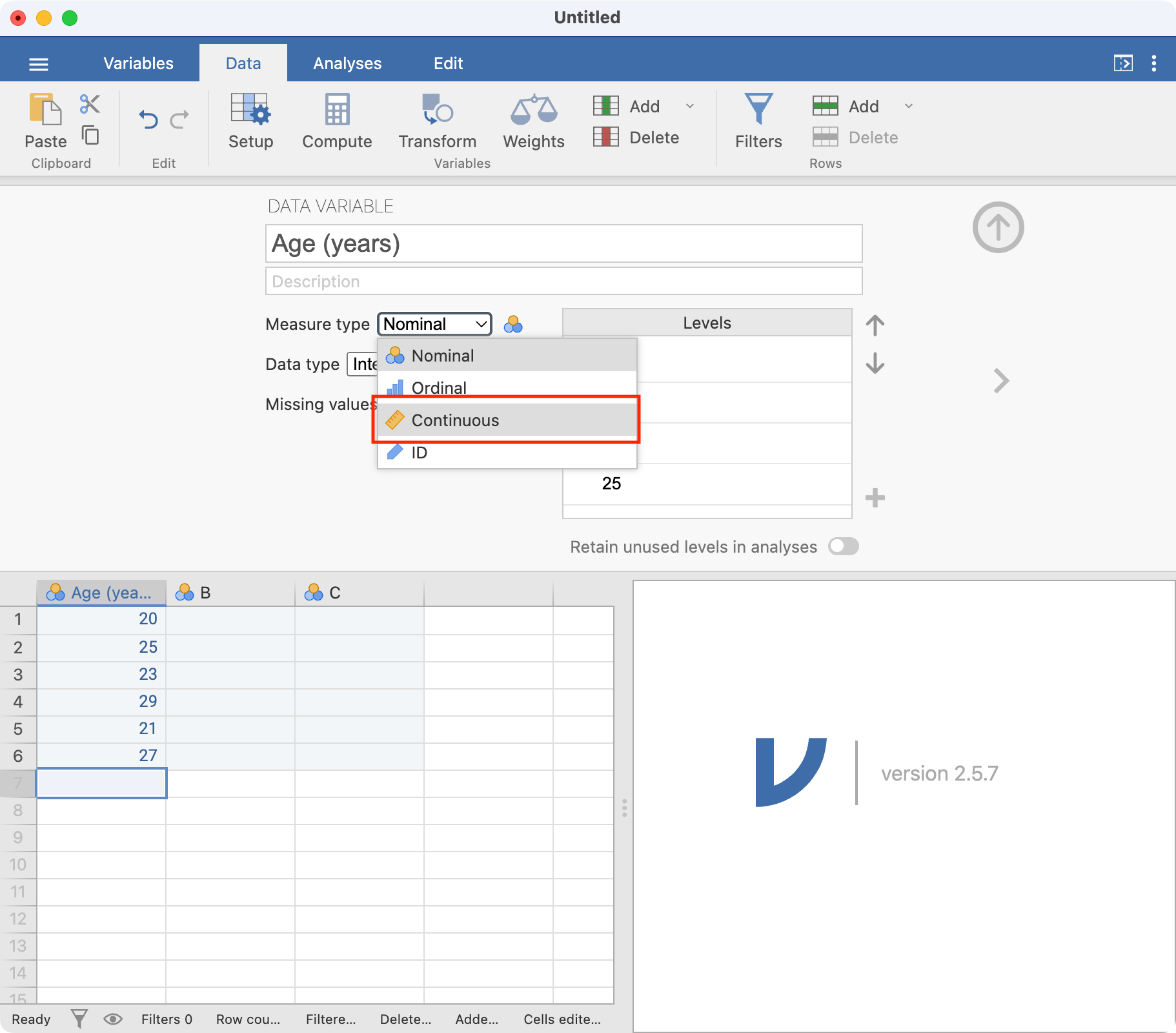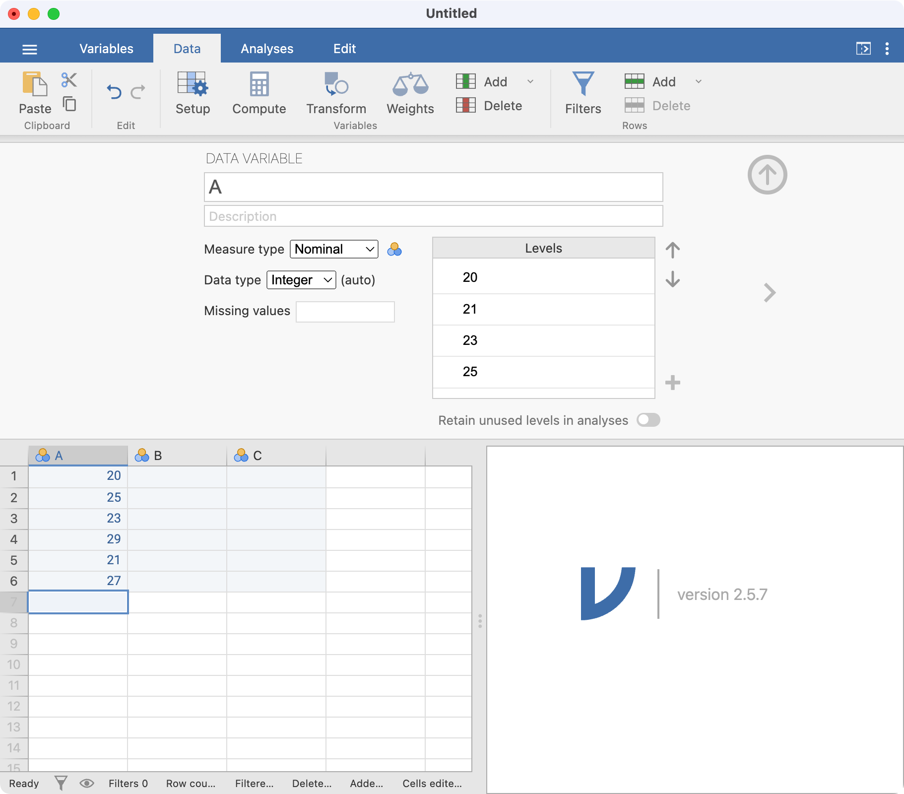 Note that categorical variables are often stored in data sets using numbers to represent categories. However, this is for convenience only, and these variable must not be analysed as if they were numeric variables.