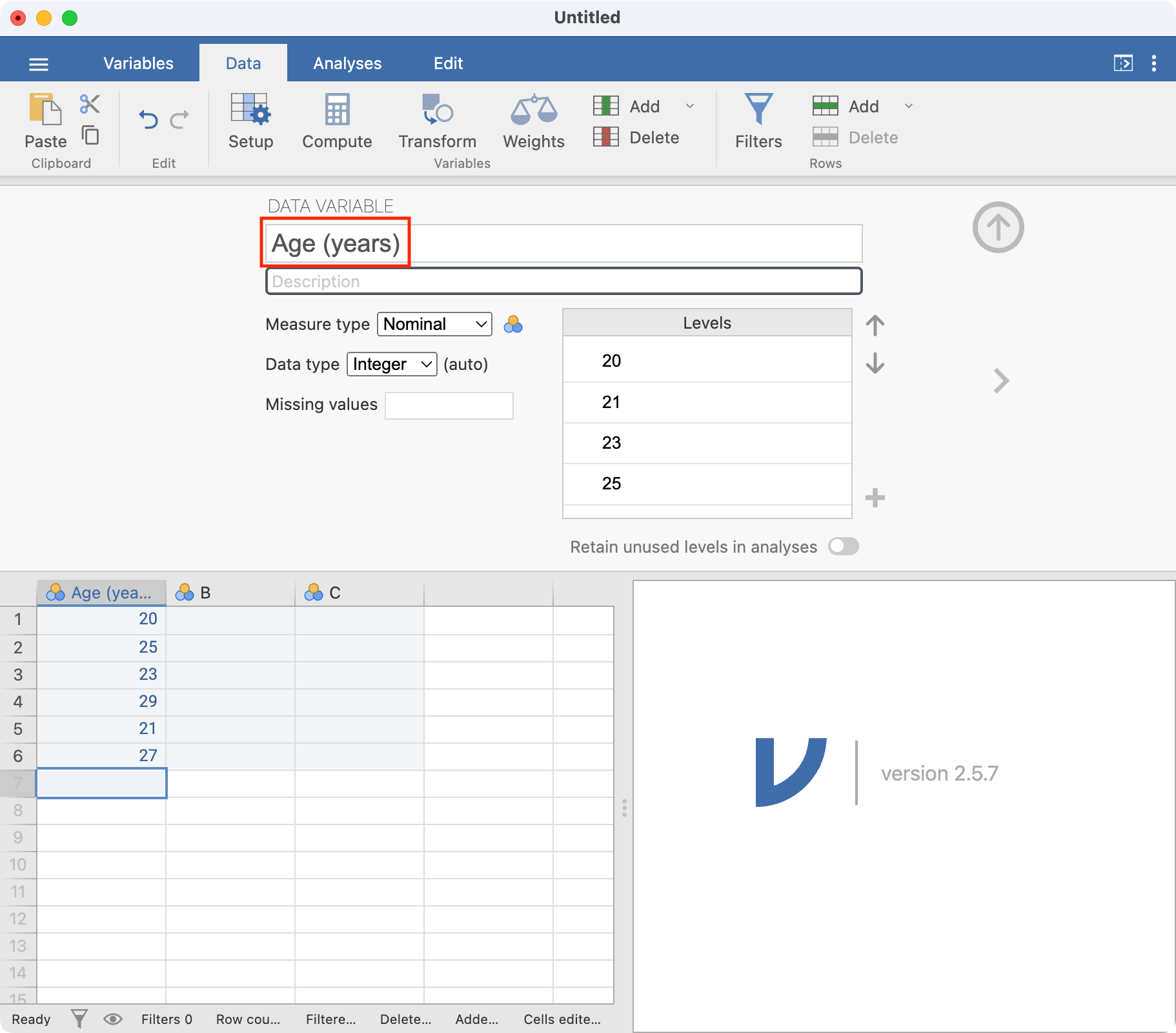 We will use a sample of 35 ages (in whole years) to illustrate how to calculate the average value and measures of variability: