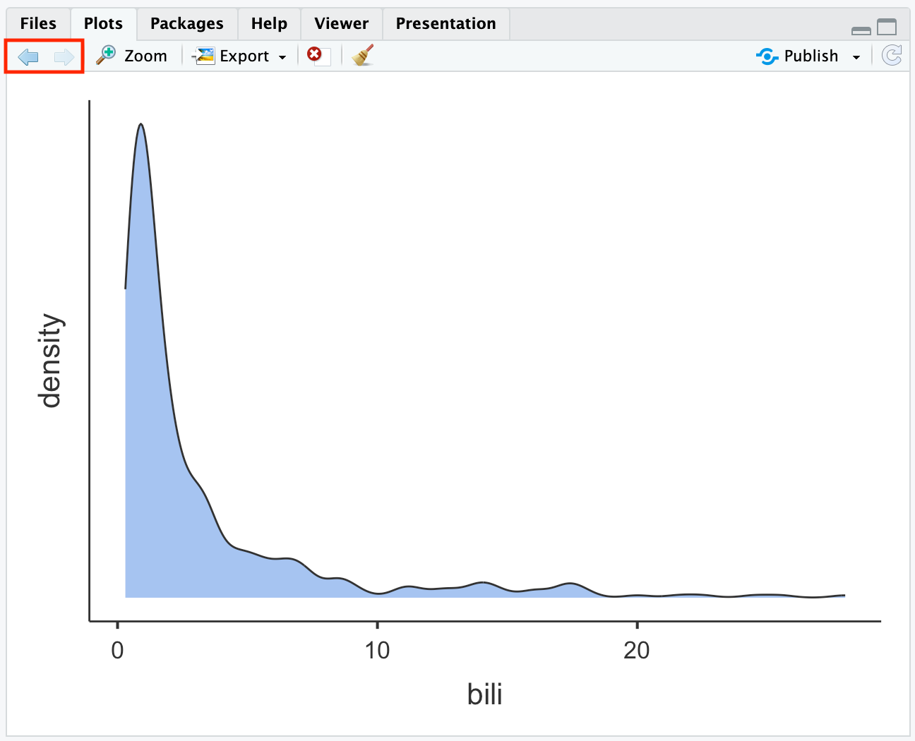 Note that the density plots are plotted separately in the Plot window. They can be viewed using the arrows at the top of the Plot window: