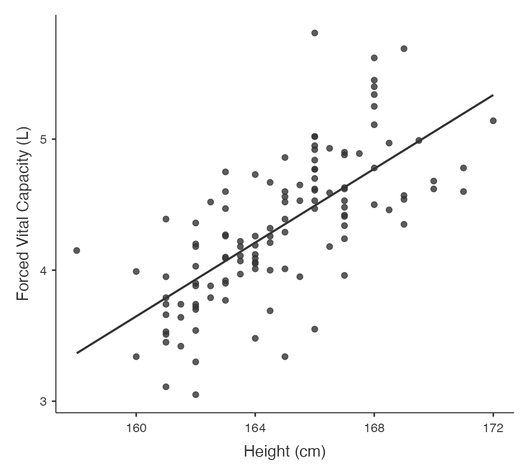 This equation can be used to predict FVC for a person of a given height. For example, the predicted FVC for a person 165 cm tall is estimated as: